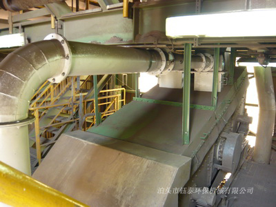 鐵礦干選車(chē)間皮帶輸送機(jī)、破碎機(jī)、振動(dòng)篩除塵系統(tǒng)管道安裝完畢,粉塵控制和收集效果很好。