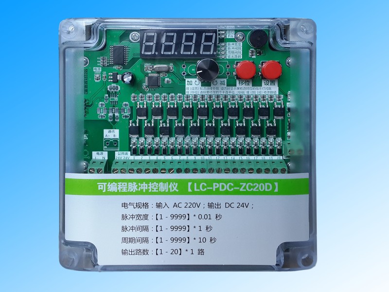 脈沖袋式除塵器控制儀 LC-PDC-ZC20D (在線式 20路 ),此款控制儀電壓有24V和220V兩款,購買時請告知客服選用電壓,以免為您造成不必要的損失。此款脈沖控制儀輸出路數(shù)可調(diào),凡是所控脈沖閥數(shù)量為20個以下,全部可以使用。