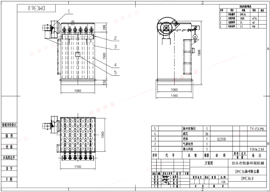 | 設(shè)備型號 | 處理風(fēng)量(m³/h ) | 濾袋數(shù)量(只) | 過濾面積(㎡) | 電機功率(Kw) |