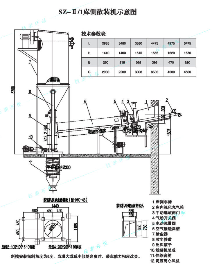 散裝機自帶除塵器,過濾面積為64m2,排塵濃度≤30mg/Nm³(滿足國家環保有關標準要求)。
